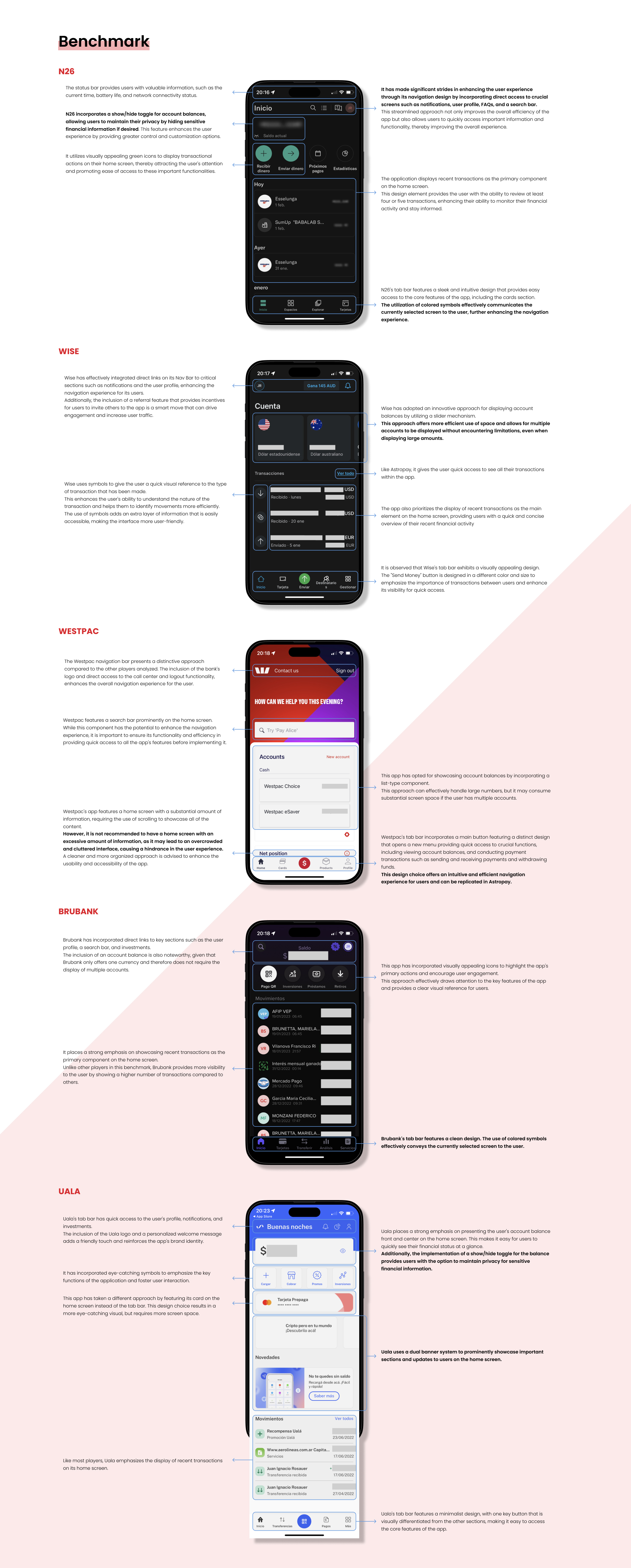 I conducted an exhaustive analysis of both direct and indirect competitors, examining their applications, features, and initiatives. This research was crucial for identifying the most attractive elements for users and understanding market trends.